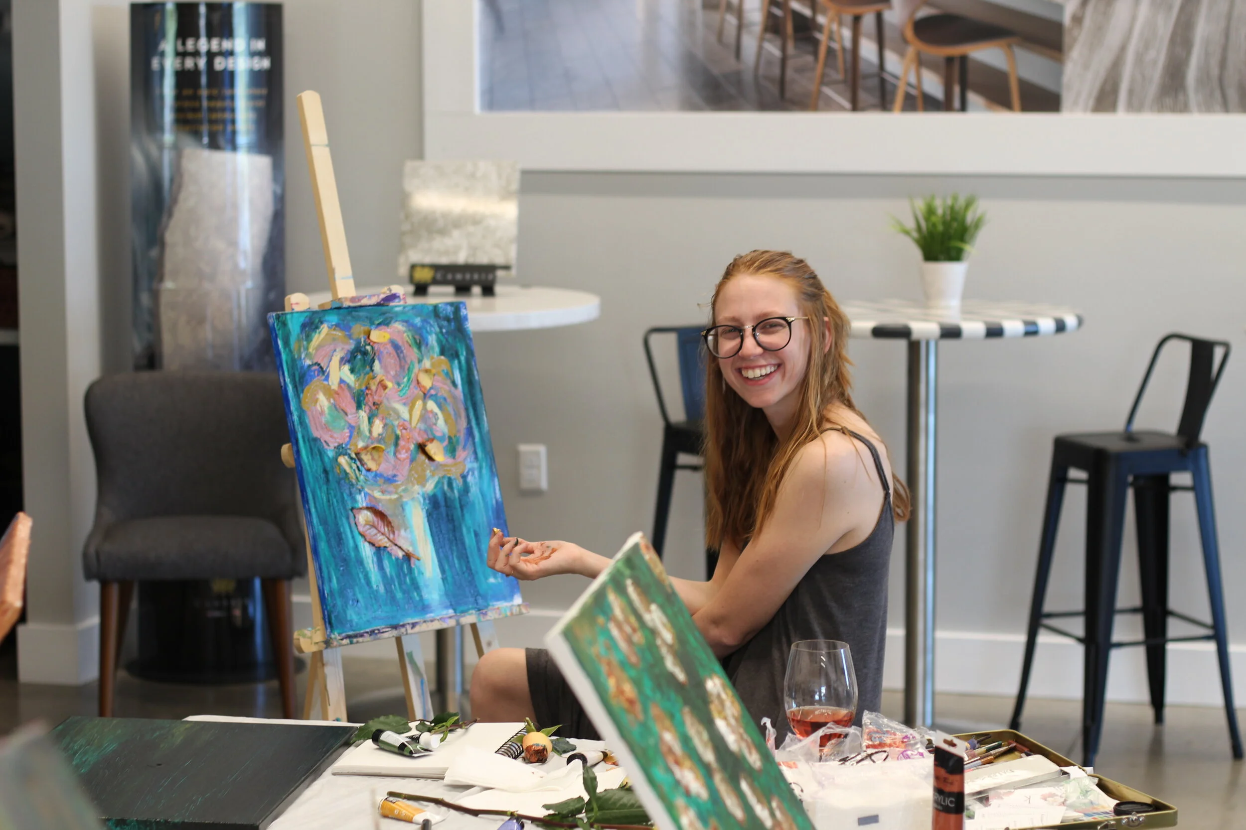 Painting is titled “Relaxing Roses.” Her mentor artist is Kristine Reiner.